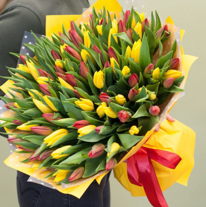 101 красный и желтый тюльпан | Купить букет в Орехово-Зуево