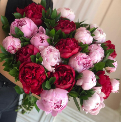 Букет из 21 розовых и красных пионов | Купить в Орехово-Зуево