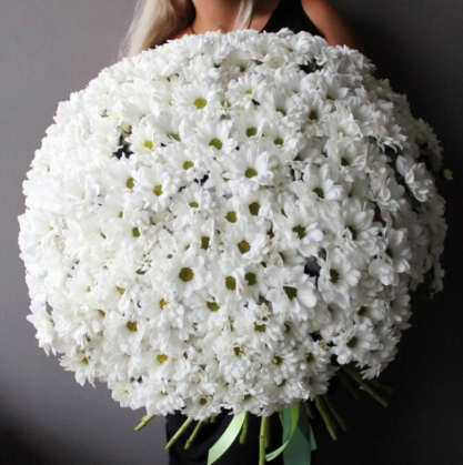 Огромнейший букет из 45 хризантем под ленту