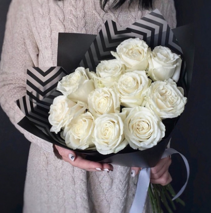 Букет белых роз в упаковке | Доставка цветов в Орехово-Зуево