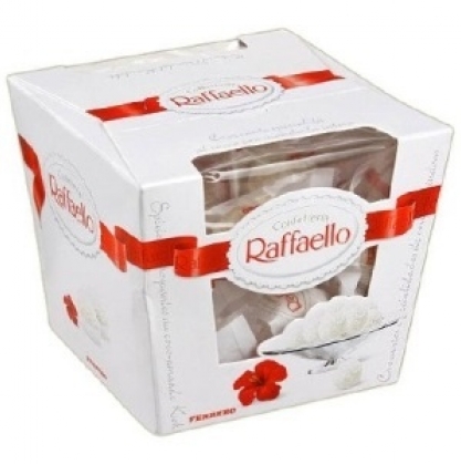 Классические конфеты Raffaello в квадратной упаковке станут приятным дополнением к букету цветов.