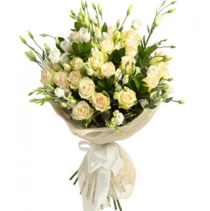 Кустовые розы и лизиантусы