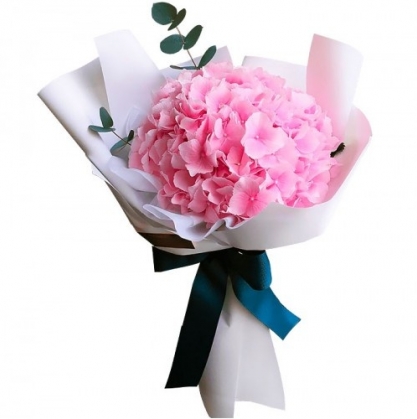 Цветок гортензии с добавлением эвкалипта в стильной матовой упаковке