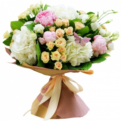 Букет Талисман | Пионы и гортензия с доставкой в Орехово-Зуево