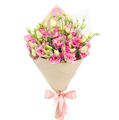 Букет из розовой эустомы в стильной крафт упаковке